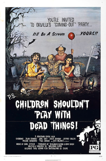 Children Shouldn't Play with Dead Things (CSPDT, a partir de ahora) fue la película con la que Bob Clark debutó en el cine en 1973. Y me hice con ella cuando, para recuperarme de los excesos navideños y porque había llegado una película que tenía encargada, me fui a una tienda que vende películas raras y para cinéfilos de importación situada en un paraíso para los frikis como yo, ya que en dos calles te puedes encontrar tiendas dedicadas a los cómics, librerías especializadas y coleccionismo cinematográfico. Es casi la única razón por la que jamás me mudaré de Barcelona.